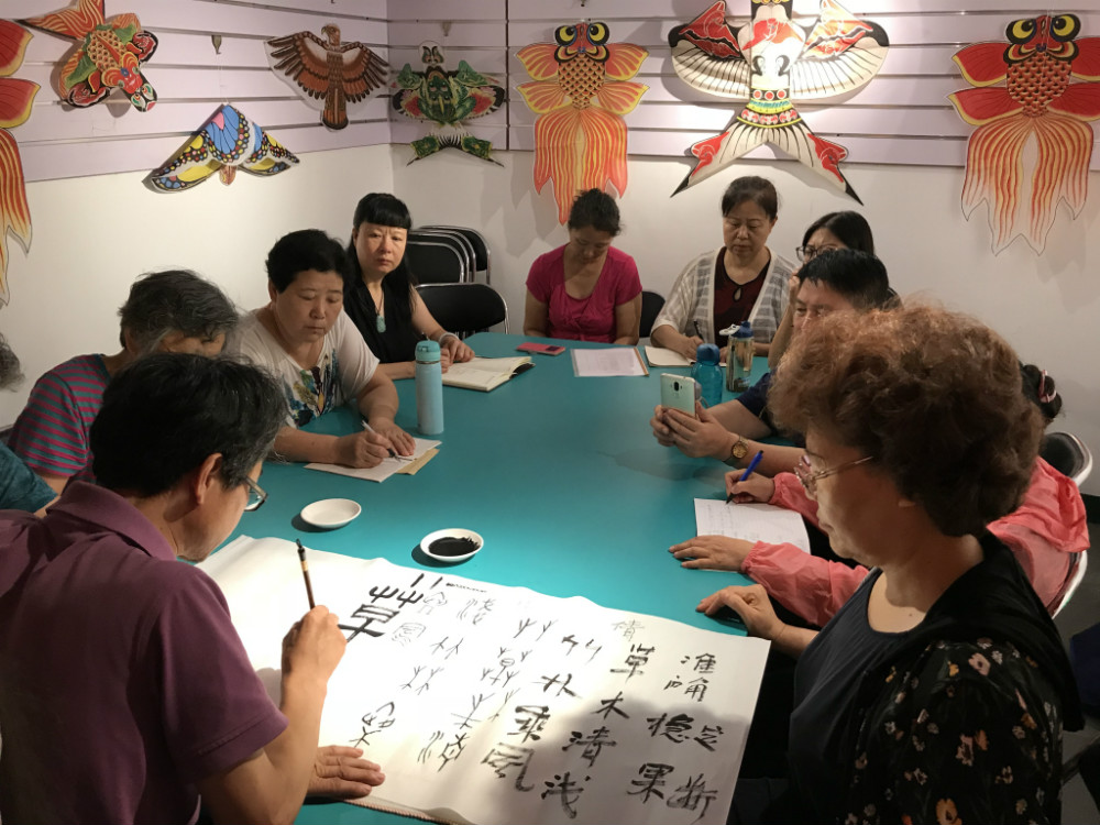 6月30日上午,群四社区党委联合方庄地区楼宇党总支怀远教育党支部组织的社区讲习堂“墨香文化 乐活社区”系列公益书画培训班如期开展了第四次学习活动。